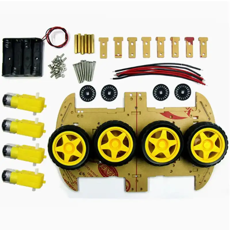 2. Utilizes four geared DC motors for flexible turning and good directional control. Four-wheel drive, ample horsepower. Large and stable chassis, very easy to expand.